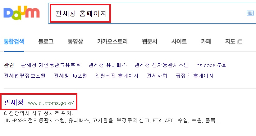 1. 관세청 홈페이지
