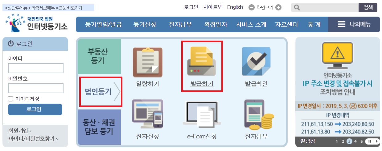 법인등기부등본 인터넷발급 방법