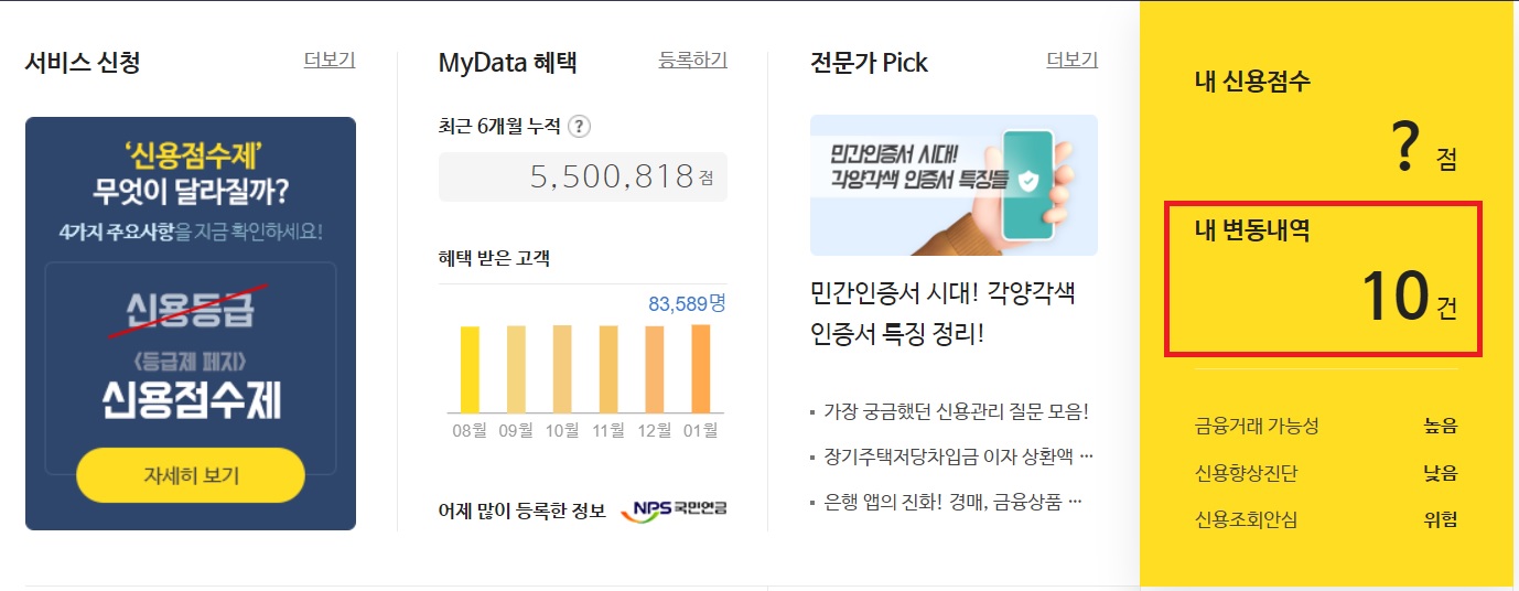 내 신용점수 변동내역