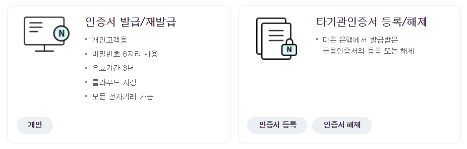 인증서 발급 / 인증서 등록